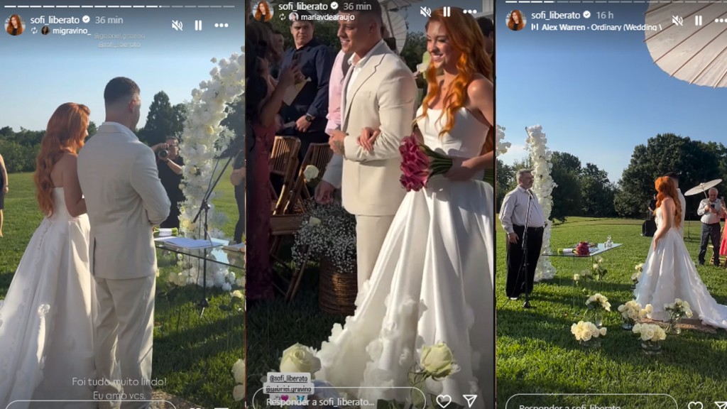 Sofia Liberato, de 21 anos, oficializou nesta sexta-feira (16), sua união com Gabriel Gravino, piloto de drift. O casamento da filha de Gugu Liberato, apresentador que morreu em 2019 após um acidente doméstico, aconteceu nos Estados Unidos, onde ela mora atualmente.