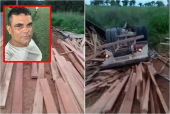 A informação é que ele morreu preso às ferragens do caminhão. Parte da carga de madeira ficou espalhada pelo acostamento.