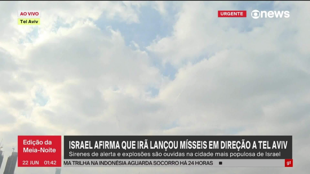 Sirenes de alerta e explosões foram ouvidas na manhã deste domingo (22) em Tel Aviv, Israel, após o lançamento de mísseis vindos do Irã, segundo o exército israelense.