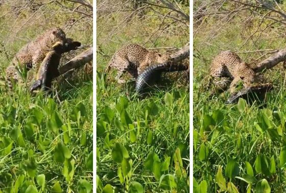 Uma onça foi flagrada atacando um jacaré no Pantanal de Mato Grosso. O vídeo foi postado no Instagram, no último sábado (05), e conta com mais de 15 mil likes (veja o vídeo abaixo).