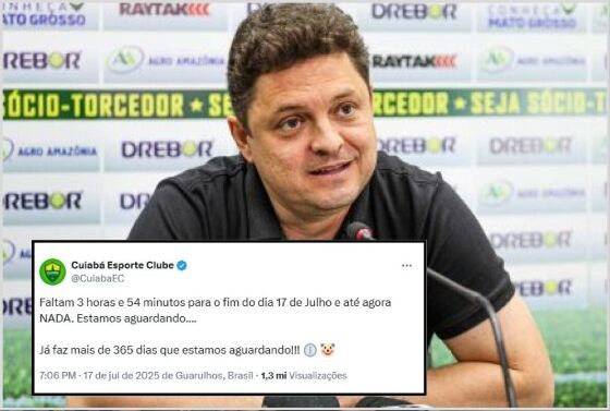 O Cuiabá usou o perfil oficial no X para “comemorar” o aniversário de um ano da dívida do Corinthians pela compra do volante Raniele. A primeira parcela venceu em julho do ano passado e não foi paga. No post, o Dourado escreveu: “Mais de 365 dias esperando”, numa contagem debochada dos dias que vêm sofrendo o calote.