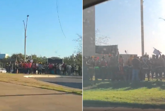 Um vídeo feito por um motorista registrou o momento em que um grupo indígena protesta em frente ao Buffet Leila Malouf, em Cuiabá, na manhã desta quinta-feira (14). A manifestação acontece devido à audiência pública sobre demarcação de terras, realizada pela Associação Mato-grossense dos Municípios (AMM), em parceria com a Associação dos Produtores de Soja e Milho de Mato Grosso (Aprosoja-MT).
