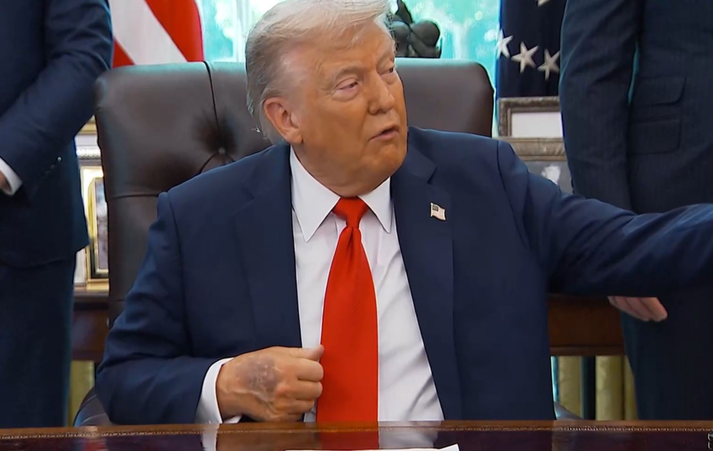 Hematoma na mão de Trump durante evento na Casa Branca em 25 de agosto de 2025