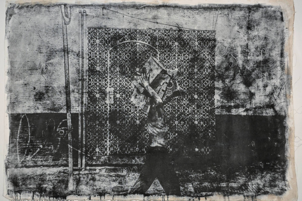 Os visitantes encontram obras como a “Demolidora Dois Irmãos”, uma imagem antiga, já usada em outros trabalhos, que ele reutilizou o negativo e fez novas intervenções.