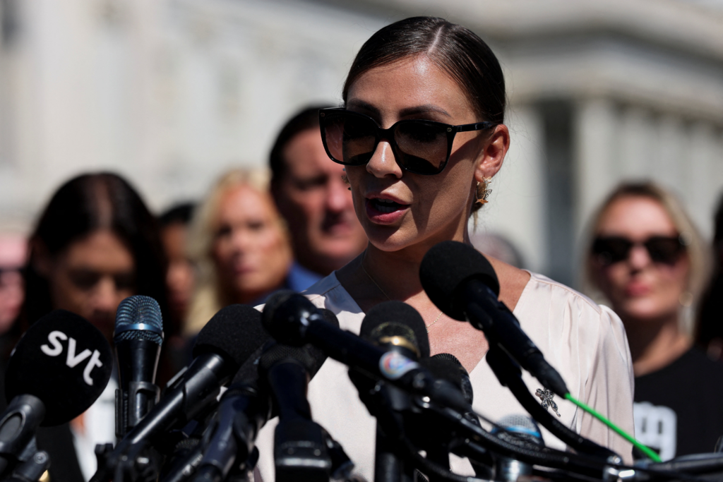 A brasileira Marina Lacerda durante coletiva de imprensa em 3 de setembro de 2025