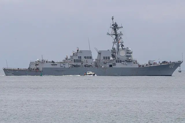 O navio de guerra americano Sampson foi visto em um porto no Panamá na terça-feira