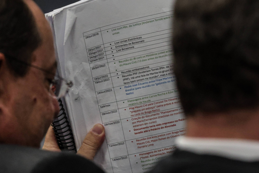 A defesa de Bolsonaro disse que não há provas ligando o ex-presidente ao 8 de Janeiro ou a planos como o “Punhal Verde e Amarelo”. O advogado Celso Vilardi afirmou que ele foi “dragado” para o processo a partir da apreensão do celular e da colaboração premiada de Cid.