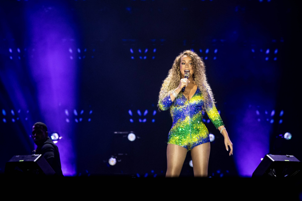 Depois de trocar de roupa e pôr um vestido curto prateado, Mariah fez uma sequência de arrepiar, “Hero” e “Without You”, dois sucessos dos anos 1990 que resumem bem o peso dela na música pop. Em tempos em que alcance vocal era fundamental para uma diva pop, Mariah virou estrela —e referência.