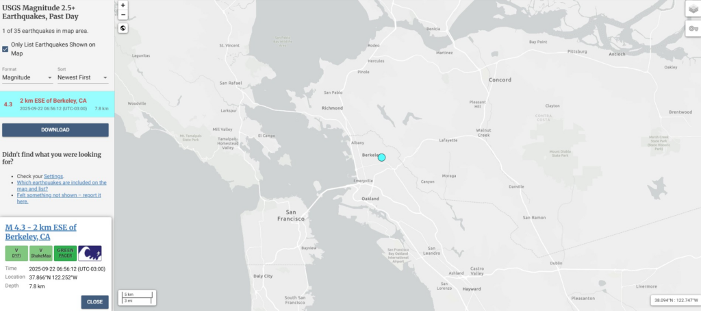 Segundo o Serviço de Geologia americano (USGS, na sigla em inglês), o epicentro tremor ocorreu Berkeley, no noroeste da cidade, e teve profundidade de 7,8 km, considerada próxima à superfície.