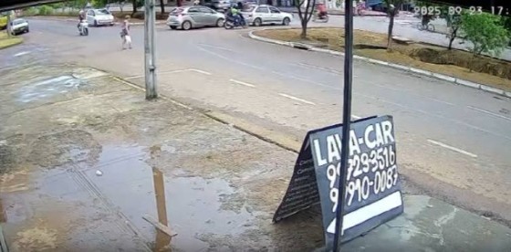 Com o impacto, a vítima já caiu desmaiada. As duas integrantes da moto também caíram, mas se levantaram rapidamente.
