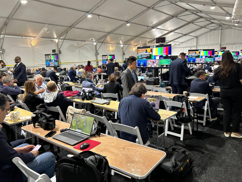 “No início, achei que o calor era por conta das temperaturas um pouco acima do normal para essa época do ano em Nova York, mas uma fonte das Nações Unidas garantiu que a resposta estava no ar-condicionado: por conta da grave crise financeira que a ONU enfrenta, os organizadores da Assembleia Geral escolheram a opção de tenda mais barata para abrigar os jornalistas. O ar não deu vazão, e o calor foi intenso”, disse Coaglio.