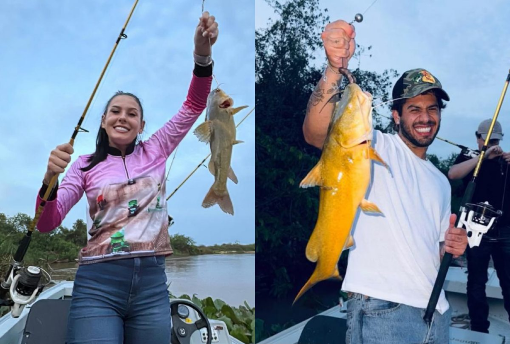 Ana Castela e Zé Felipe em pescaria no Pantanal mato-grossense