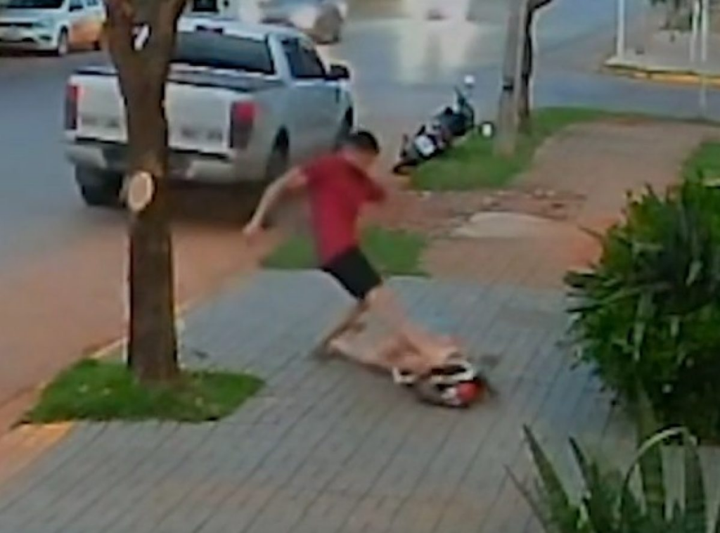 As agressões contra a vítima de 31 anos foram gravadas por câmeras de segurança, no domingo (28), e compartilhadas nas redes sociais. Nas imagens, o empresário de 32 anos aparece descendo de uma caminhonete e perseguindo a ex-companheira que desce de uma motocicleta e sai correndo na tentativa de escapar das agressões.