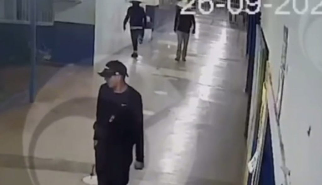De acordo com informações da Polícia Civil, a Escola Estadual Heliodoro Capistrano da Silva, no bairro Parque Cuiabá, foi furtada por volta das 2h da sexta-feira (26). Imagens de câmera de segurança captaram três bandidos, que usavam bonés e chapéus de palha, entrando pela porta dos fundos e da lateral e violando os cadeados, enquanto outros dois aguardavam do lado de fora.