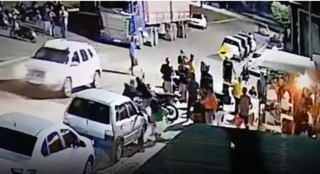Uma câmera de segurança registrou toda a ação. No vídeo, é possível ver o casal em pé, quando o agressor se aproxima por trás deles e começa a desferir diversos golpes contra Flávio. A vítima tenta se defender e entra em luta corporal com o homem, mas acabou sendo atingido no coração. Fátima também tentou intervir, mas foi atingida na região do abdômen. Após os ataques, o ex-companheiro da mulher foge rapidamente do local em um Sandero prata.