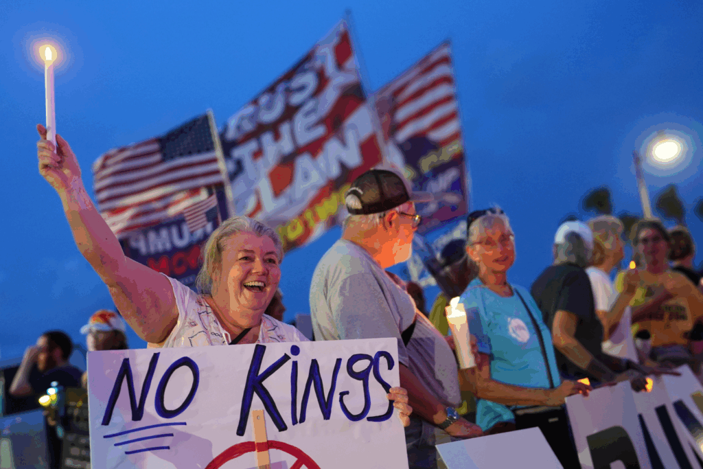 A manifestação, que ocorre em meio ao 18º dia de paralisação do governo federal, é vista como o maior ato nacional de oposição desde o retorno de Trump à Casa Branca. O republicano passa o fim de semana em sua residência de Mar-a-Lago, na Flórida, onde participa de um jantar de arrecadação de fundos de seu super PAC, o MAGA Inc., ao custo de US$ 1 milhão por prato.