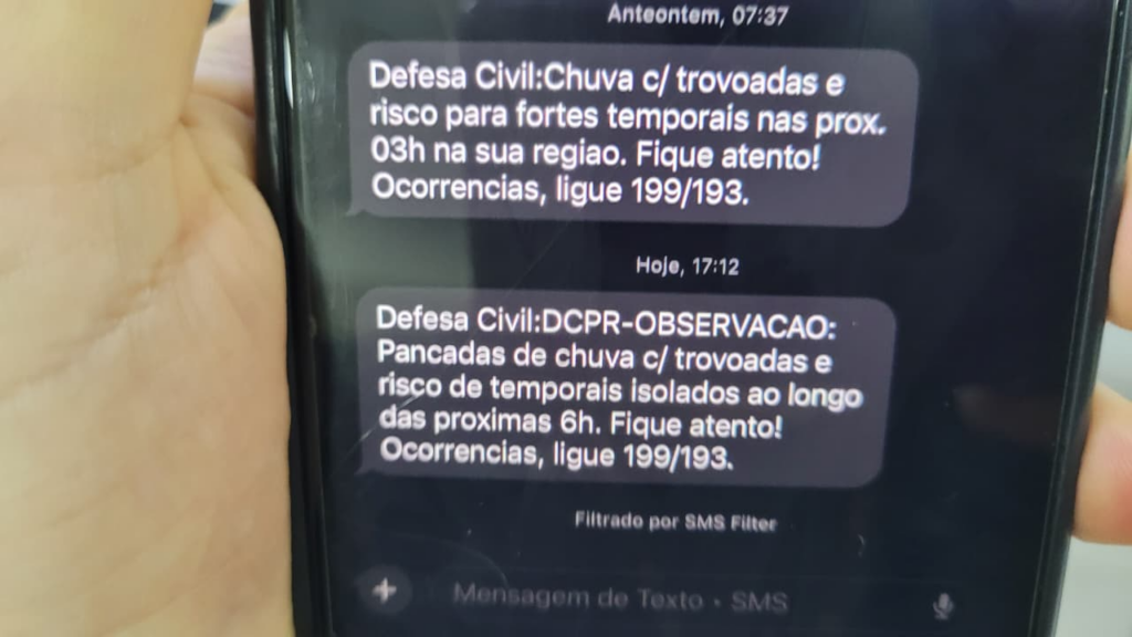 A Defesa Civil do Paraná tem um serviço de cadastro para o recebimento gratuito de alertas de emergência por SMS. O serviço informa a população sobre riscos como deslizamentos, inundações, granizo e vendavais, ajudando na prevenção e segurança em situações de risco.