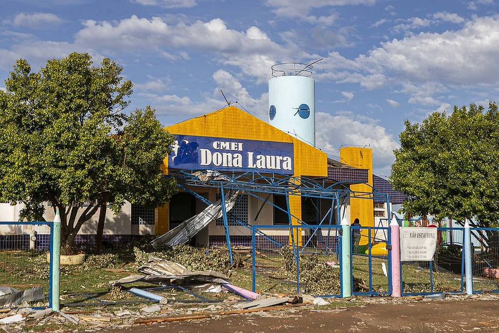 Parte dos alunos das redes estadual e municipal depende do sistema de transporte escolar e a garagem que abriga os ônibus foi um dos locais mais atingidos pelo tornado. O município tem 41 veículos —29 são da frota municipal e 12 de empresas contratadas.