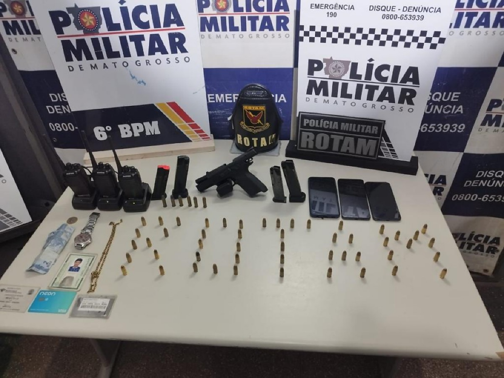 Os militares se deslocaram até o endereço e encontraram mais seis munições de calibre .38, 33 munições de calibre 9 mm, além de mais três carregadores e rádios.