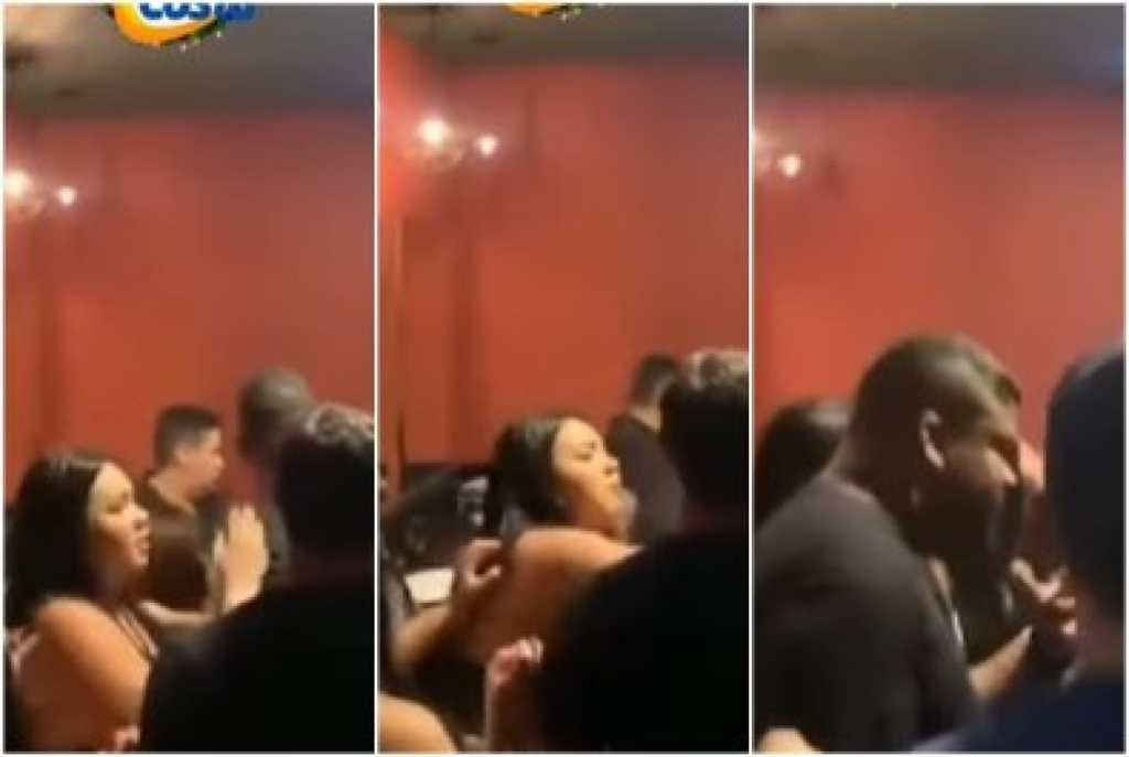 Nas imagens, é possível ver empurrões, socos e objetos sendo lançados durante a confusão