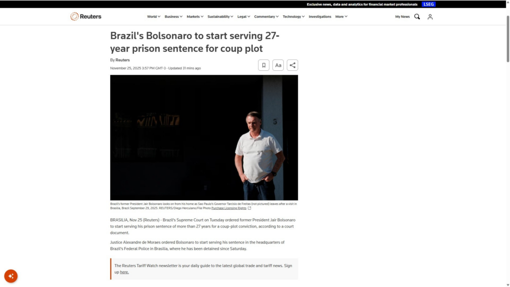 Bolsonaro começa a cumprir pena de prisão: veja a repercussão na imprensa internacional