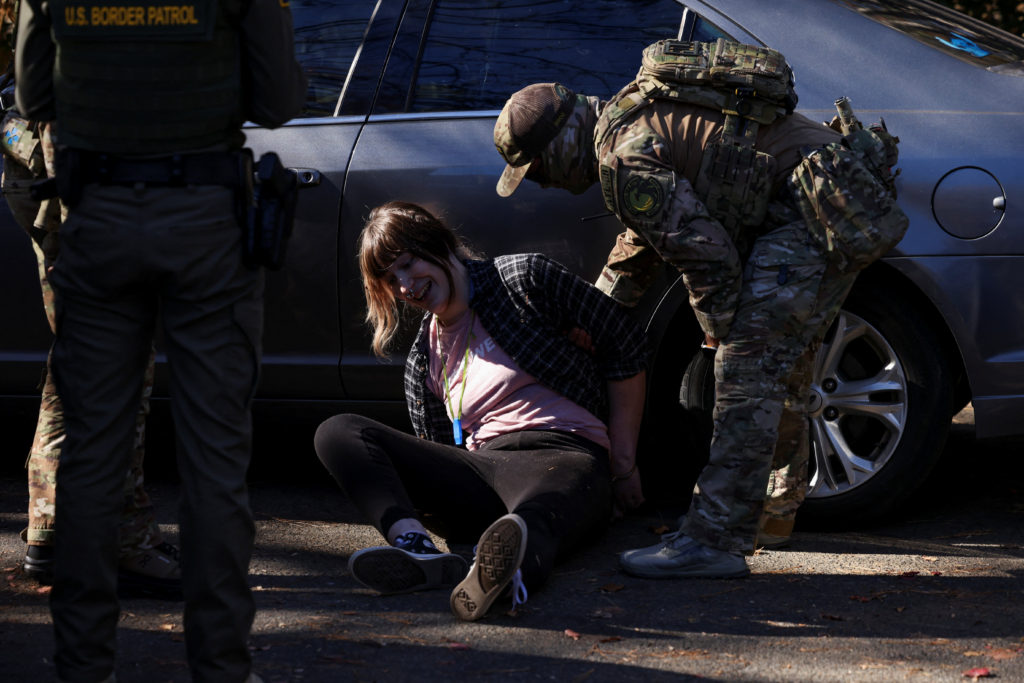 Manifestante é detida durante operação do ICE em Charlotte, na Carolina do Norte, em 17 de novembro de 2025