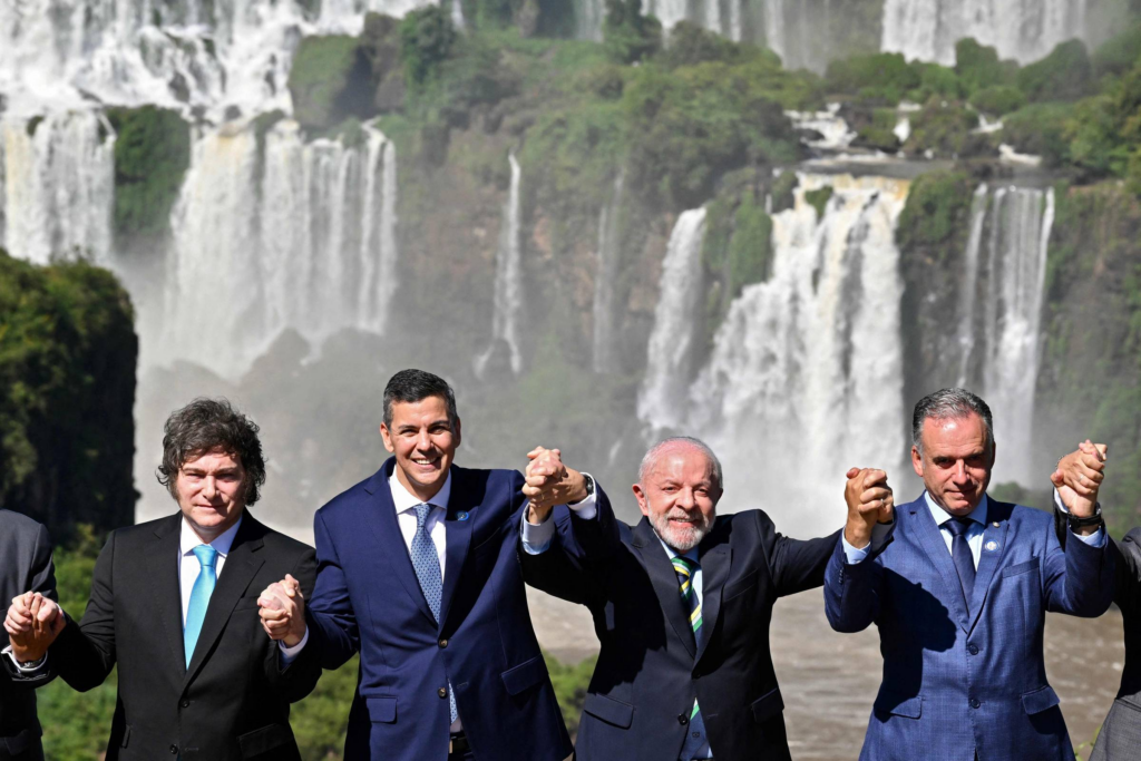 Javier Milei, que agora comemora a assinatura do texto, passou a primeira metade de seu governo criticando o Mercosul, já tendo comparado o bloco a uma “cortina de ferro” que impediria negociações de interesse de seus componentes.