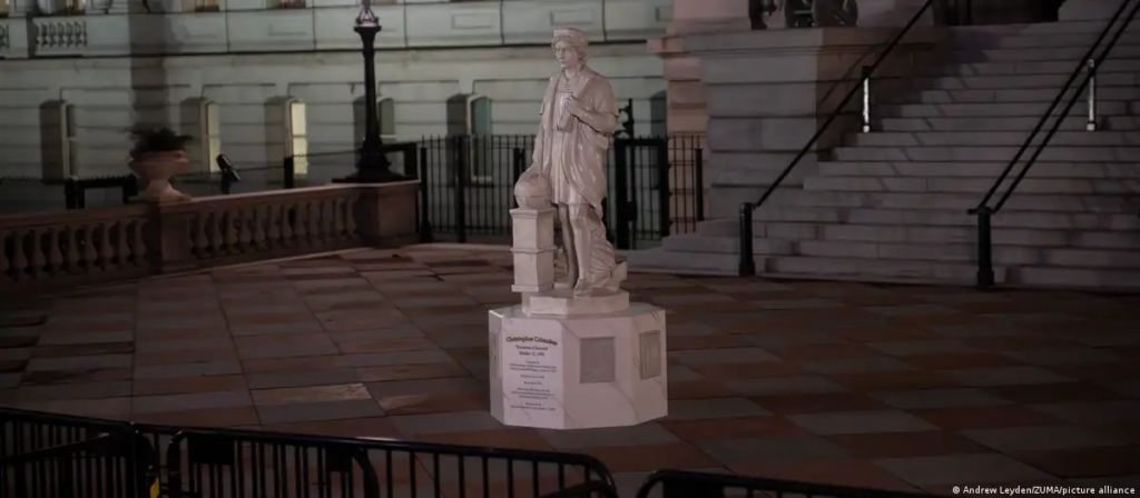 A nova estátua foi colocada nos jardins do Edifício Executivo Eisenhower, que fica ao lado da Casa Branca. Trump chamou Colombo de “o herói americano original e um dos homens mais galantes e visionários” da Terra, em uma carta enviada à Conferência dos Presidentes das Principais Organizações Ítalo-Americanas, divulgada neste domingo (22).
