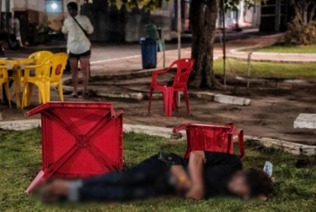 A Polícia Militar chegou ao local por volta das 21h30 e encontrou a vítima caída no chão. Testemunhas relataram que o homem estava visivelmente embriagado e alterado, insultando clientes que aguardavam atendimento.
