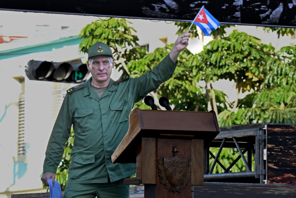 “Foi construída uma narrativa mentirosa e muito cínica: a de Cuba como Estado falido (…) Cuba não é um Estado falido, é um Estado cercado”, continuou o chefe de Estado. “Continuamos sendo uma revolução socialista bem debaixo do nariz do império”, acrescentou, em referência ao seu poderoso vizinho.